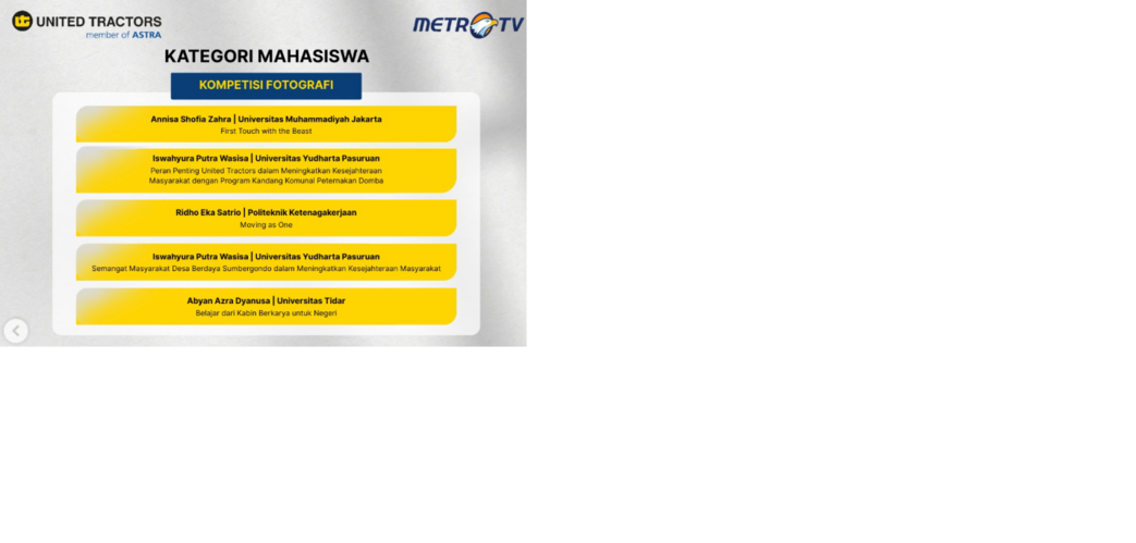 Alhamdulillah! Mahasiswi D3 TOAB FT UMJ, Annisa Shofia Zahra, Raih Juara di Kompetisi Industri Bergengsi PT United Tractors
