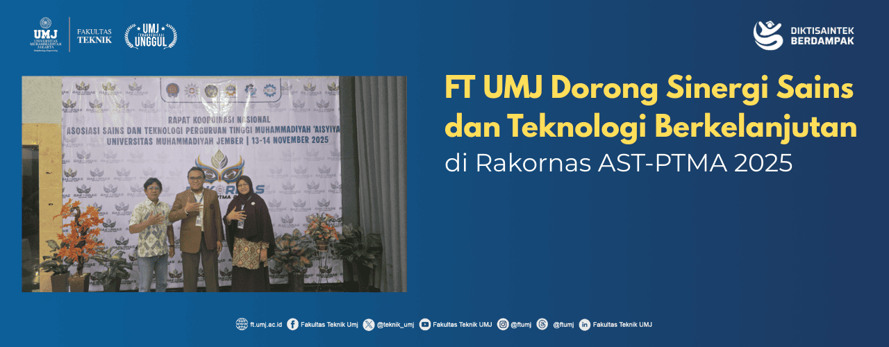 Fakultas Teknik Universitas Muhammadiyah Jakarta (FT UMJ) menunjukkan partisipasi aktif dalam Rapat Koordinasi Nasional (Rakornas) Asosiasi Sains dan Teknologi Perguruan Tinggi Muhammadiyah ‘Aisyiyah (AST-PTMA) Tahun 2025 yang digelar di Universitas Muhammadiyah Jember, pada Rabu hingga Sabtu (12-15/11/2025).