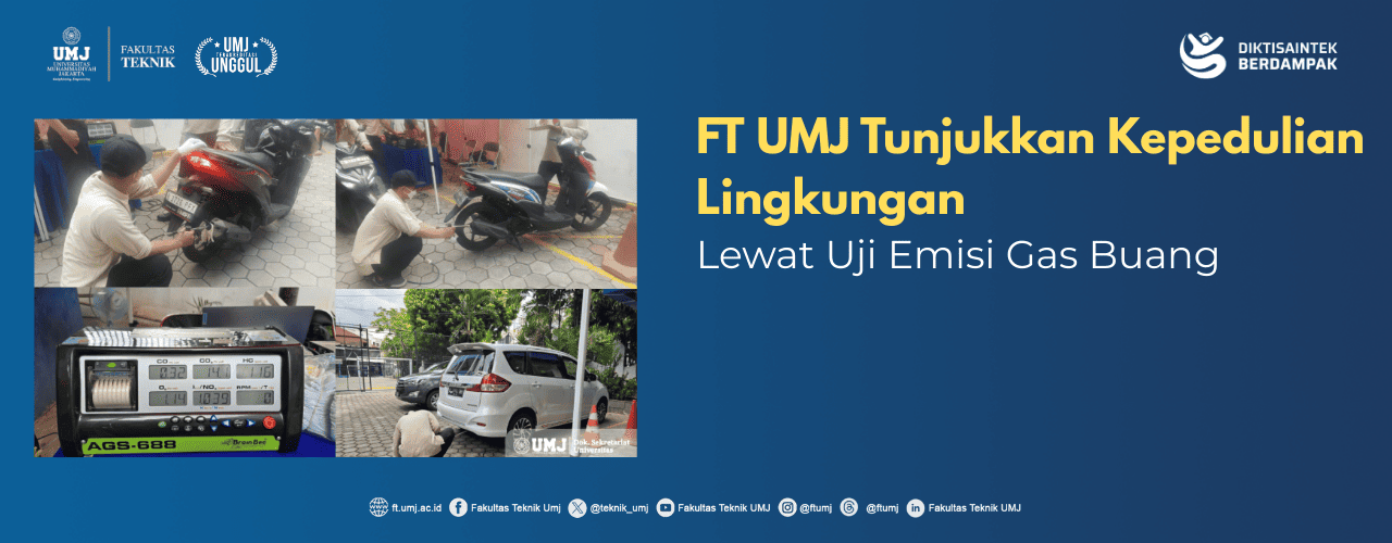 Fakultas Teknik Universitas Muhammadiyah Jakarta (FT UMJ) menunjukkan komitmen nyata terhadap pelestarian lingkungan dengan menyelenggarakan Uji Emisi Gas Buang Kendaraan Bermotor. Kegiatan ini menghadirkan tenaga teknis dan peralatan pengujian resmi seperti gas analyzer AGS-688 yang berlangsung di area parkiran FT UMJ pada Selasa, (18/11/2025).
