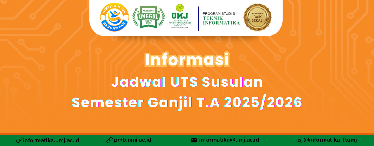 Diberitahukan kepada mahasiswa Fakultas Teknik Universitas Muhammadiyah Jakarta yang akan mengikuti Ujian Tengah Semester Susulan (UTSS) Semester Ganjil 2025-2026 harap melaksanakan sebagai berikut: