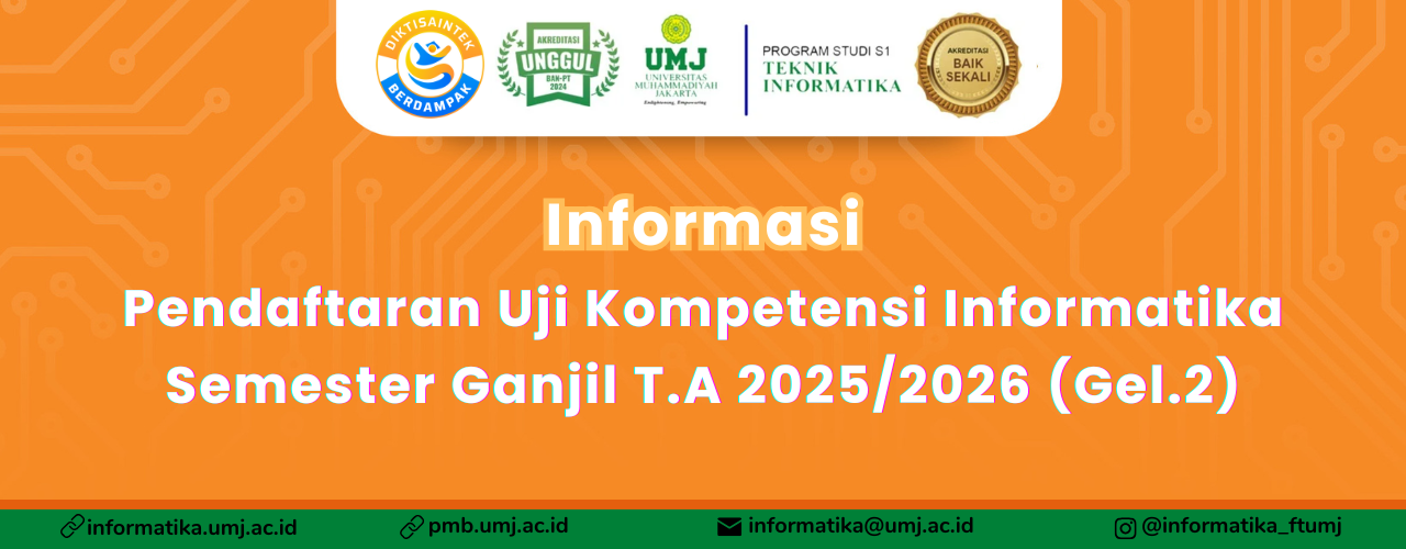 Program Studi Informatika FT-UMJ kembali akan mengadakan uji kompetensi Informatika periode Semester Ganjil 2025/2026