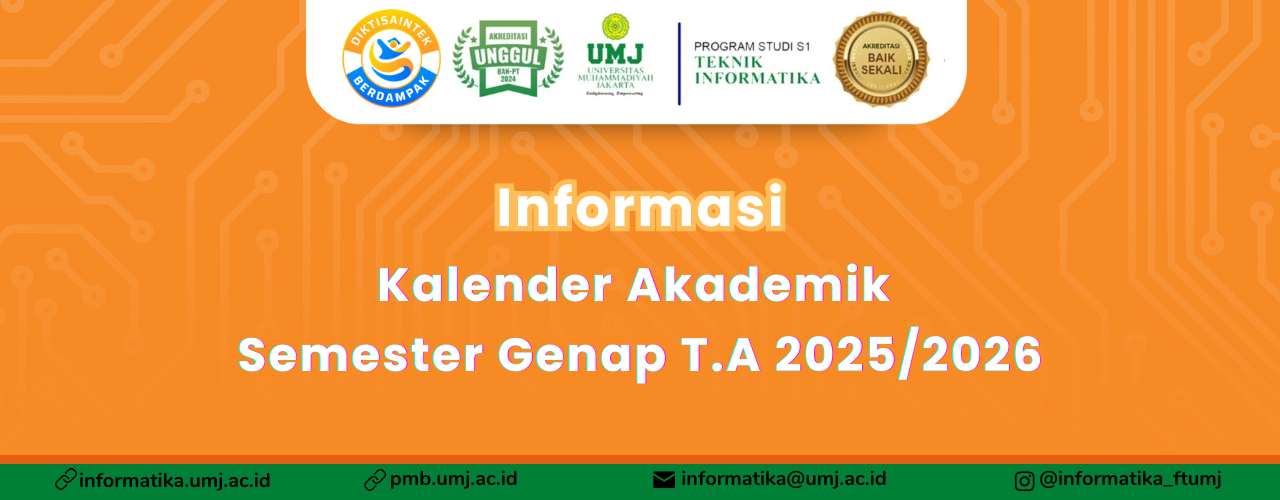 Memasuki Semester Genap Tahun Akademik 2025/2026, terlampir informasi Kalender Akademik Genap T.A 2025/2026 Fakultas Teknik UMJ. Download Kalender Akademik >> KLIK DISINI