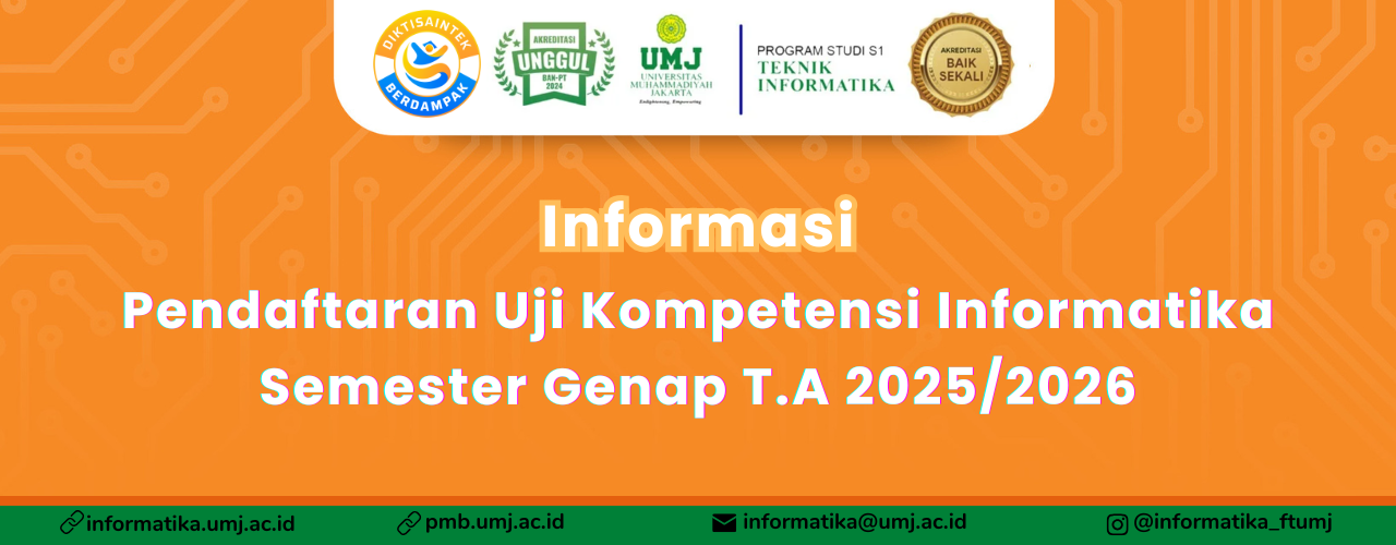 Program Studi Informatika FT-UMJ kembali akan mengadakan uji kompetensi Informatika periode Semester Genap 2025/2026