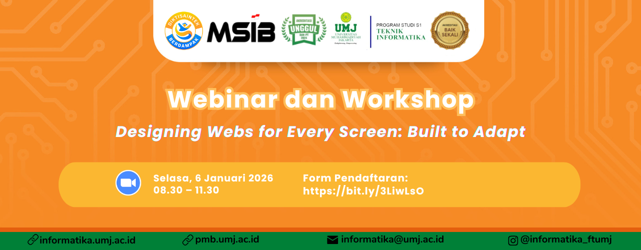 WEBINAR DAN WORKSHOP - DESIGNING WEBS FOR EVERY SCREEN: BUILT TO ADAPT 30 December 2025 | Oleh : Teknik Informatika Read more...