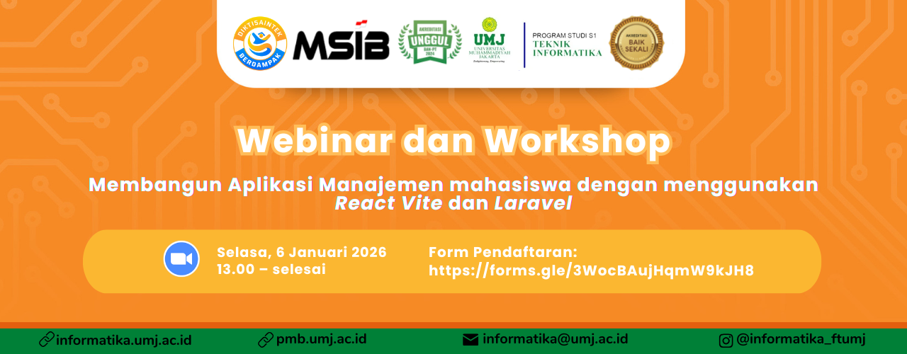 WEBINAR DAN WORKSHOP - MEMBANGUN APLIKASI MANAJEMEN MAHASISWA DENGAN MENGGUNAKAN REACT VITE DAN LARAVEL 30 December 2025 | Oleh : Teknik Informatika Read more...